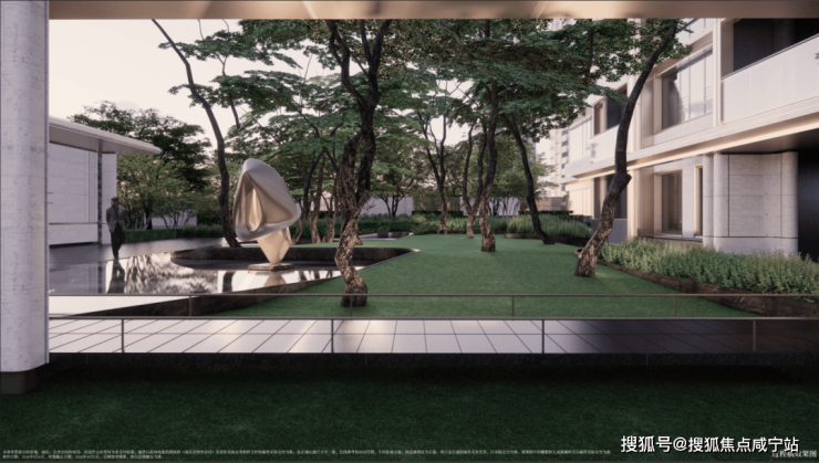 一路定制的游园式归家动线,让业主目之所及均为风景;中央会客花园内,绿植四季皆景,中央庭院景观轴上,则布局双下沉式庭院增添社区精致错落的氛围,提升归家仪式感的同时,给予业主家的温馨。