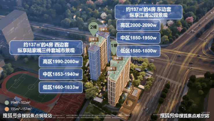 2、建面约137㎡4房也同样非常有性价比, 在西边套有陆家嘴三件套景观、东边套有整面 江浦公园 的景观资源加持下,最低价还能做到1580w,景观楼层最好的一套总价也仅约2090w。