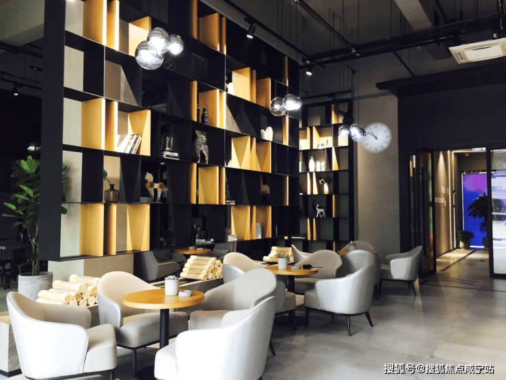 轻奢工业风大堂,书吧咖啡吧是打工人心灵休憩空间