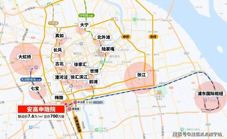 你看梅陇,15号线(已通车)、19号线(在建中)、机场联络线(已经通车)、23号线(在建中)4轨交汇。再加上虹梅路高架直插中环外环,南侧银都路越江隧道,可直通“浦东金色中环”。