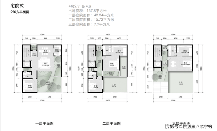 以300㎡户型为主,局部设置240㎡、400㎡等户型。