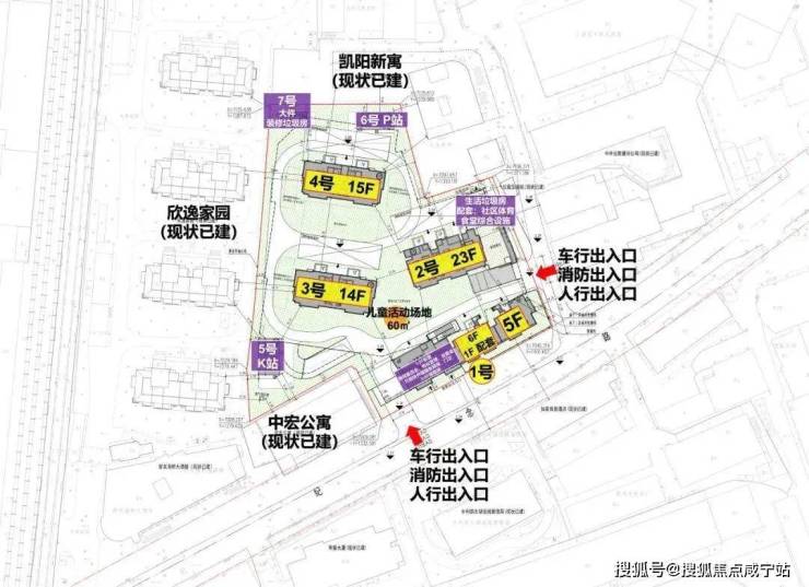2号楼23层高层,3号楼14层,4号楼15层,2号楼的东北角是生活垃圾房,社区体育配套,食堂综合设施;
