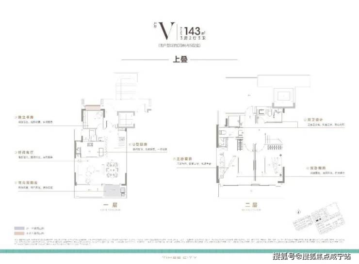 :南北双入户+挑高地下室,主卧套房配双台盆卫浴,二期升级国际奢装。