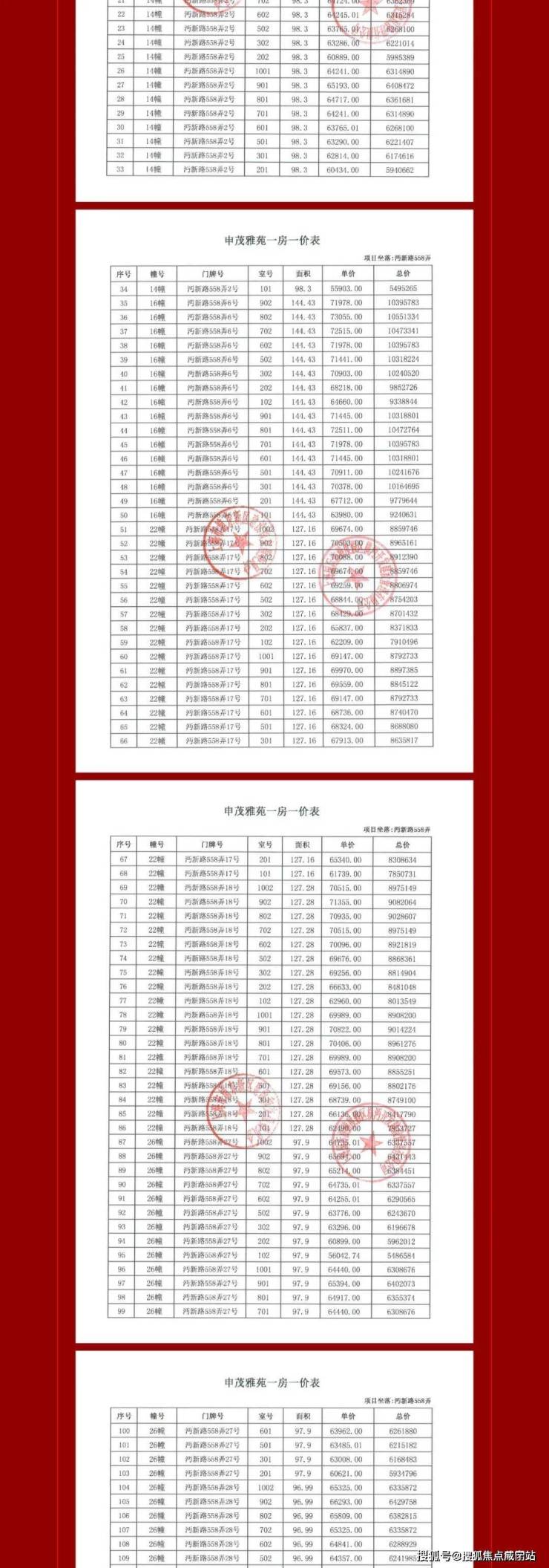 本批一房一价如下:
