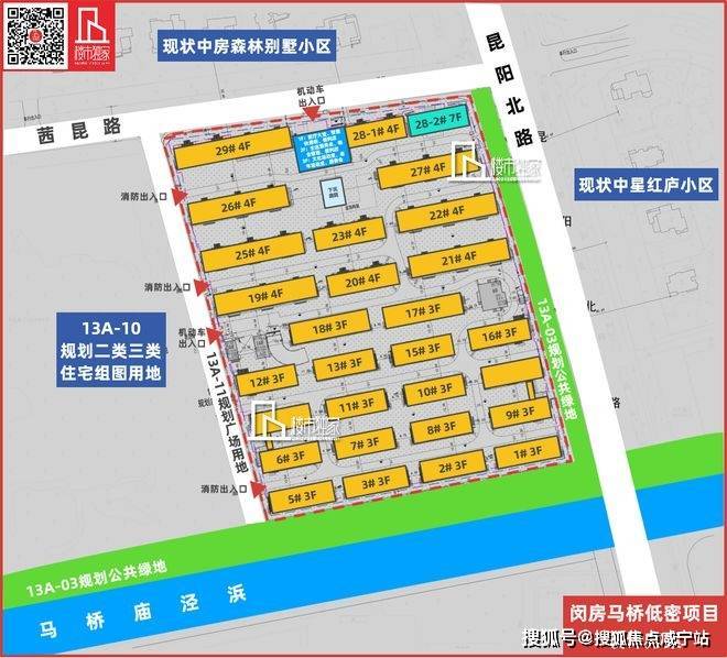闵行尚园别墅目设计方案拟建10栋4F多层,16栋3F多层,1栋7F保障房,以及1栋3F配套用房。总计包含186套可售住宅(叠加别墅、联排别墅、合院别墅)及14套高端人才公寓,车位比约1:2.76。