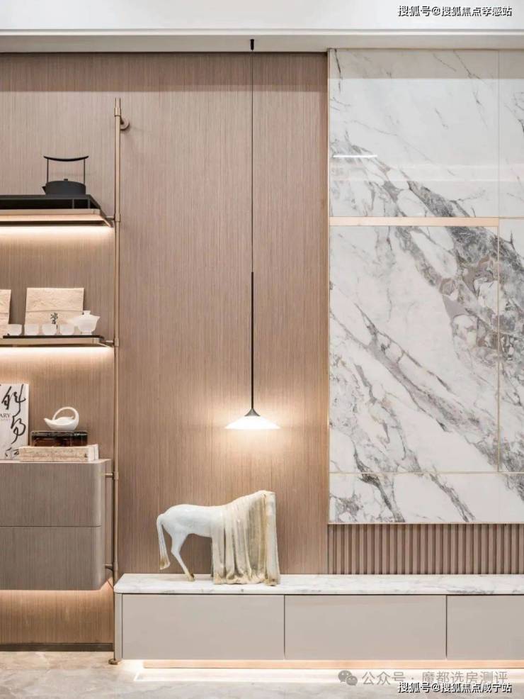 这其中也隐藏了诸多细节,比如全景一体化岩板背景墙。