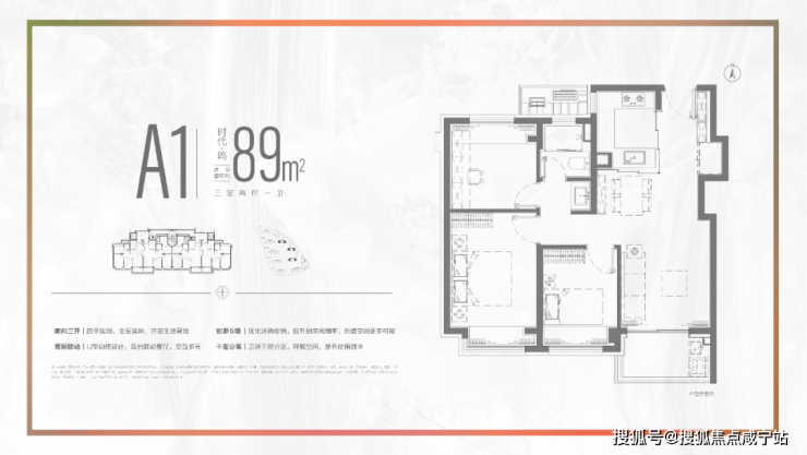 建面约89㎡(3室2厅1卫)