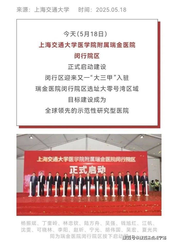 三甲医院:上海交通大学医学院附属瑞金医院闵行院区已于2025年5月动工,2028年正式营业。官方预约看房:400 -838-5958