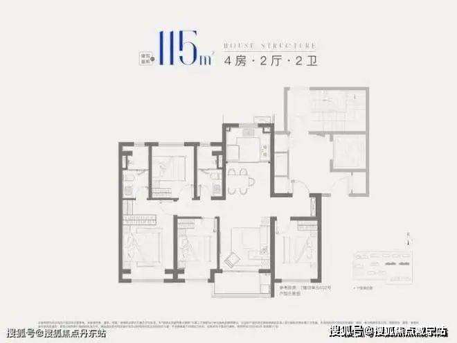 T2 房型:115 ㎡四房两卫 (四开间朝南,三房+客厅朝南,南北通透)