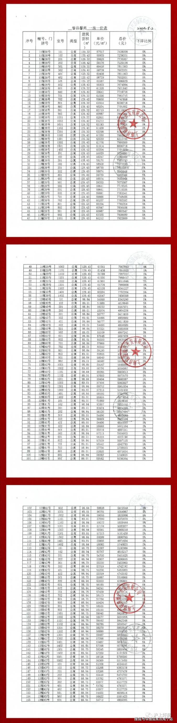 项目一房一价表