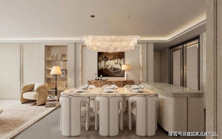 户型秉持“系统定制”为核心理念,从艺术家联名门把手到珍稀石材背景墙,肌理级的定制细节铭刻业主审美个性。