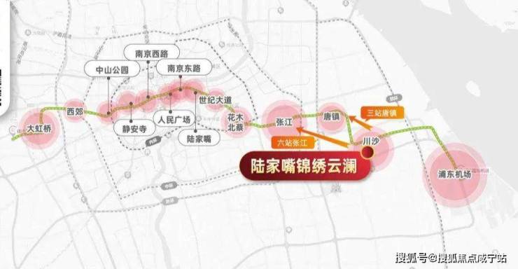 项目与2号线川沙站直线距离约1千米左右(百度地图测距),6站直达张江高科,10站至世纪大道,高效链接浦东核心商务区。