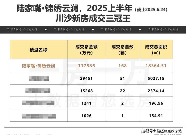 2025年上半年(截止2025.6.24),锦绣云澜强势包揽川沙板块成交总金额&总套数&总面积“三冠王”,市场认可度非同一般。