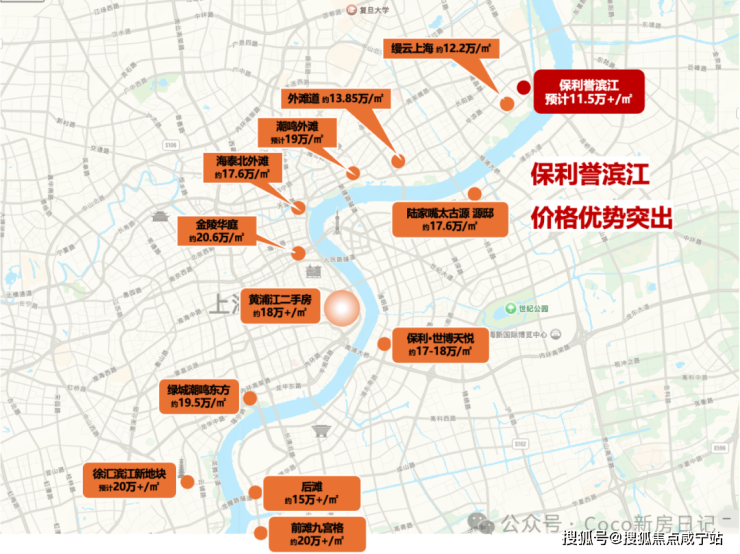 杨浦滨江:建设关键期,杨浦滨江新房单价12-13万/㎡+,总价1200万级;
