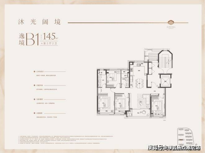 户型特点:4开间朝南,LDK一体化设计,南北通透。客厅面宽达4.3米,外接4.8米长阳台,采光通风俱佳。主卧带270°转角飘窗,主卫也有飘窗赠送。全屋飘窗设计,独立电梯厅,私密性与尊享感强。