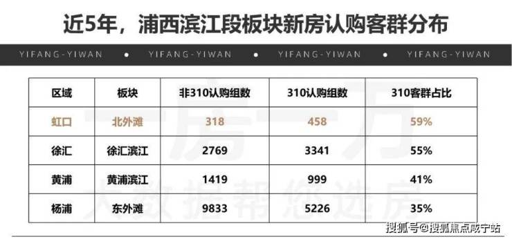 虽然新盘入市不多,但从占比来看,北外滩是浦西滨江段中最受310客群(上海本地高净值人群)青睐的板块,310客群认购占比超徐汇滨江、黄浦滨江等板块。