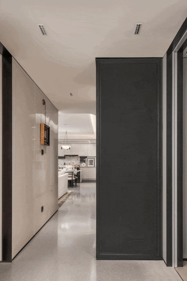此外室内还打造了隐形的嵌入式过道收纳,利用过道空间,增加储物容量,充分利用每一寸空间,让杂乱物品各归其位。