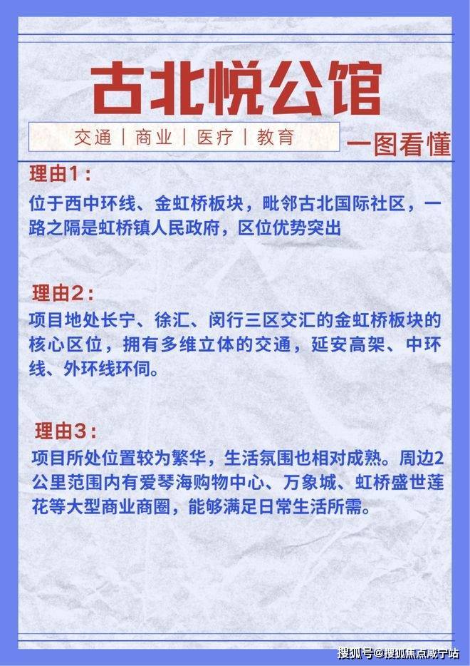 1. **地段优越**:古北悦公馆位于“古北国际社区、漕河泾开发区、徐家汇”之中的高能产业优越地段,紧邻市中心,享受成熟且丰盛的城市配套。