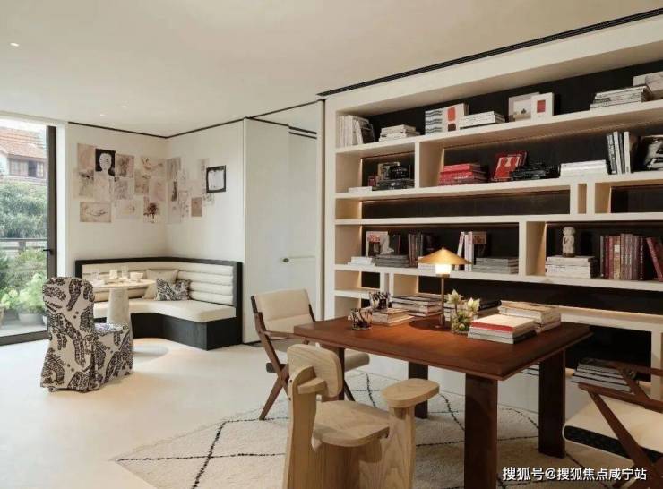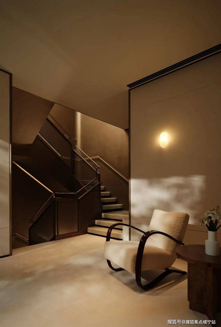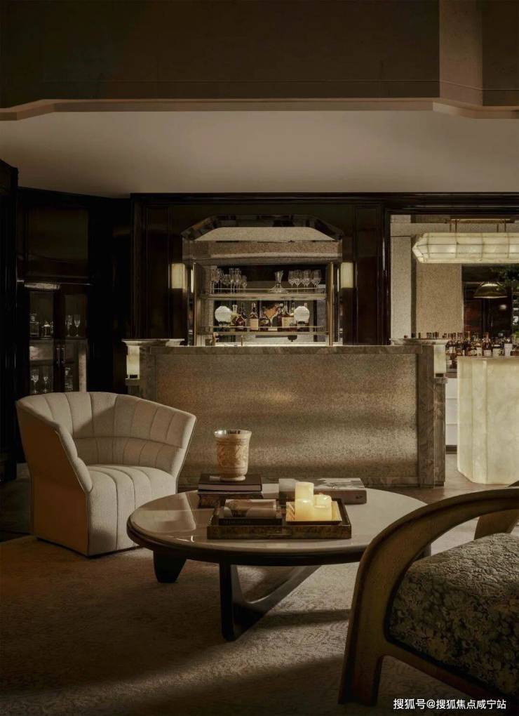 餐厅与水景庭院隔窗相望,羊皮纸拼就而成的屏风成为视觉焦点,内凹式金色圆顶,既赋予空间安定感,又营造出轻盈视效。在这样一座联结历史与当代的精神居所中,追溯东方视角,将上海百年风华凝练于启程转合之间,也昭示着生活的无限可能。