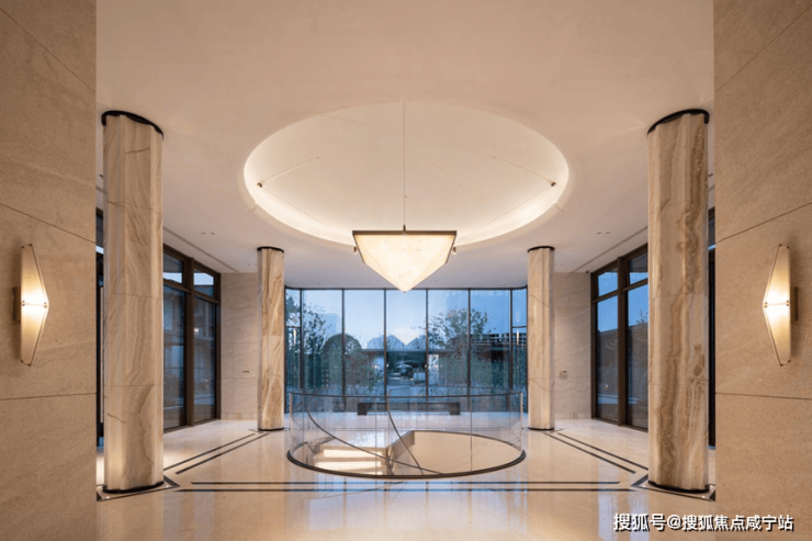 步入下沉式会所,首先映入眼帘的是中央穹顶、直纹白玉罗马柱与宝格丽同款倒锥形玉石吊灯碰撞出摩登与古典的史诗级对话。