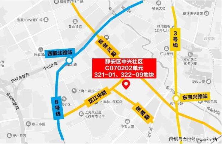 项目与3号线东宝兴路站直线距离400多米,与8号线西藏北路站直线距离约500多米,都在步行可达的范围内!