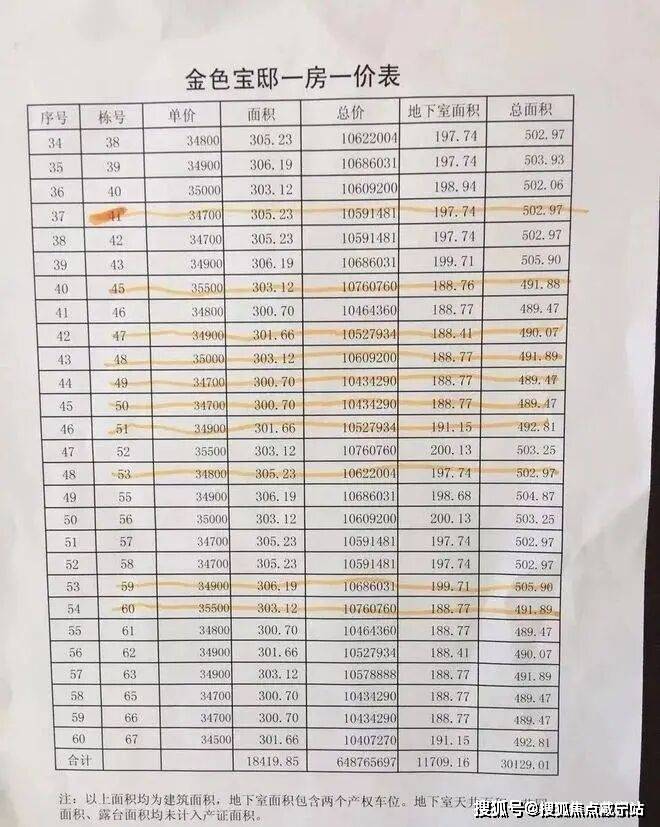 一房一价表(部分房源已售)↓↓↓