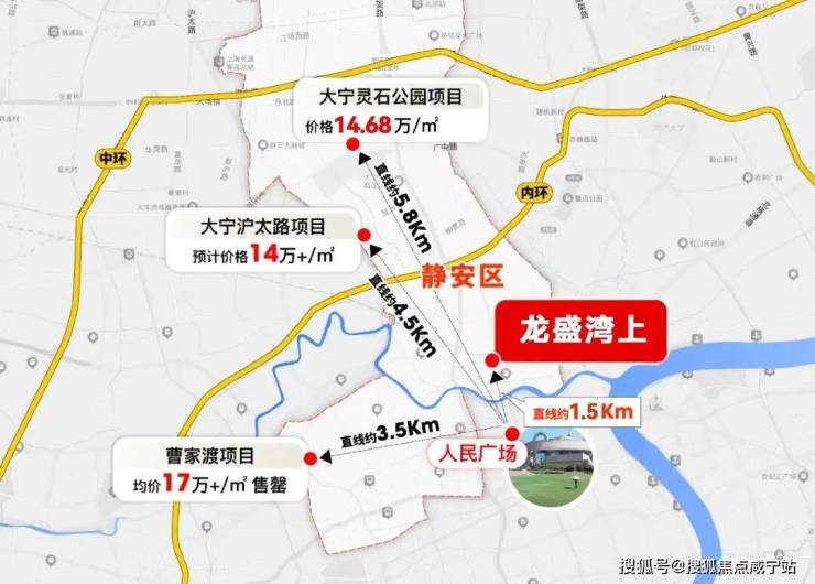 内环内核心板块新房的价格全面冲击20万/㎡,内中环间的预期价格也来到12-16万/㎡。静安区内中环的大宁板块新房中建项目单价也到了14万+/㎡。