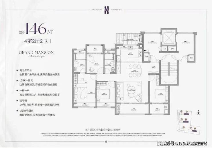 约146㎡户型升级为南北三阳台,将传统景观阳台升级为功能+景观复合空间,空间利用率会更高。