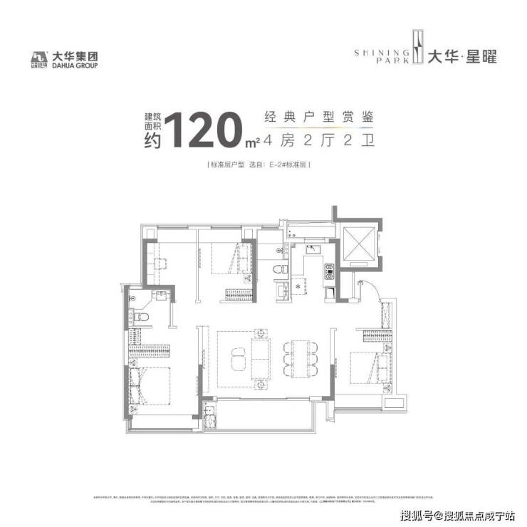 建面约 120㎡4 房 2 厅 2 卫:在市场上,建面约 120㎡的产品大多都是 3 房,而大华星曜却做了 4 房的设计,实用性非常出色。多出来的一个房间,可以根据您的家庭需求,打造成书房、客房或者儿童房。