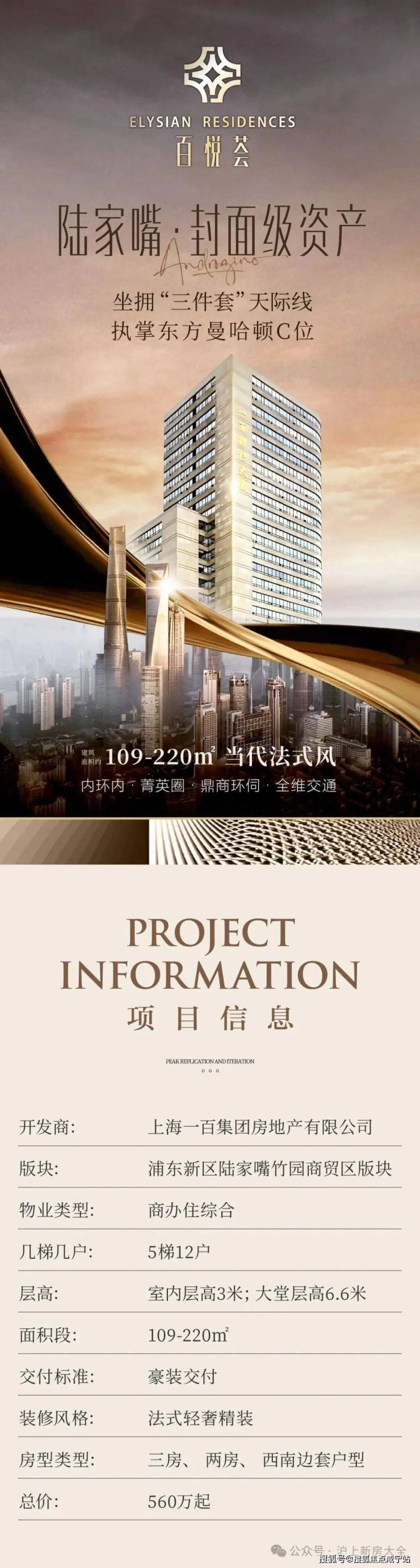 【百悅荟】陆家嘴·封面级资产内环内·菁英圈·鼎商环伺·全维交通建面约109-220㎡当代法式风