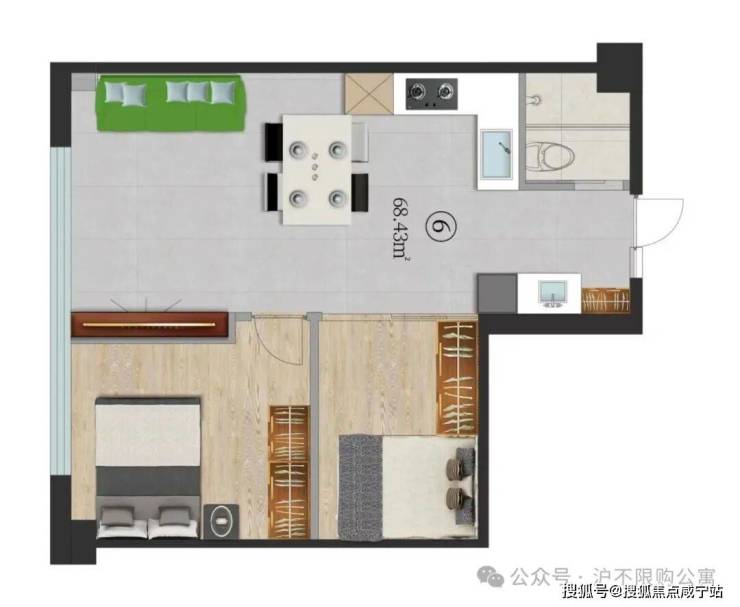 06室,68.43㎡朝西2房 235万