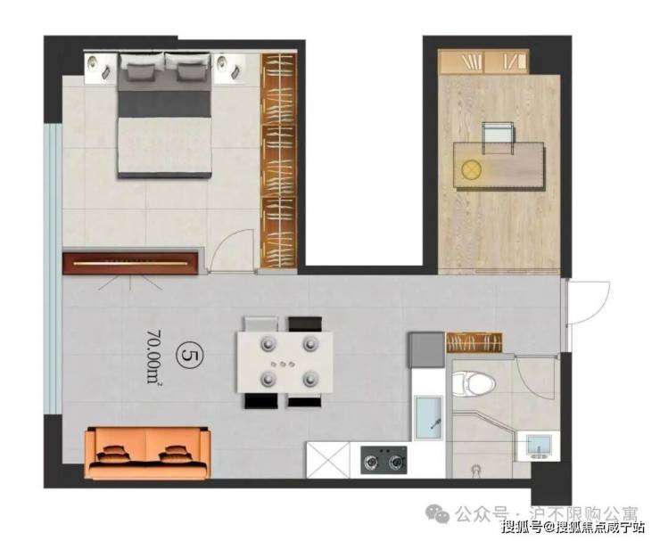 05室,70㎡ 朝西2房 238万