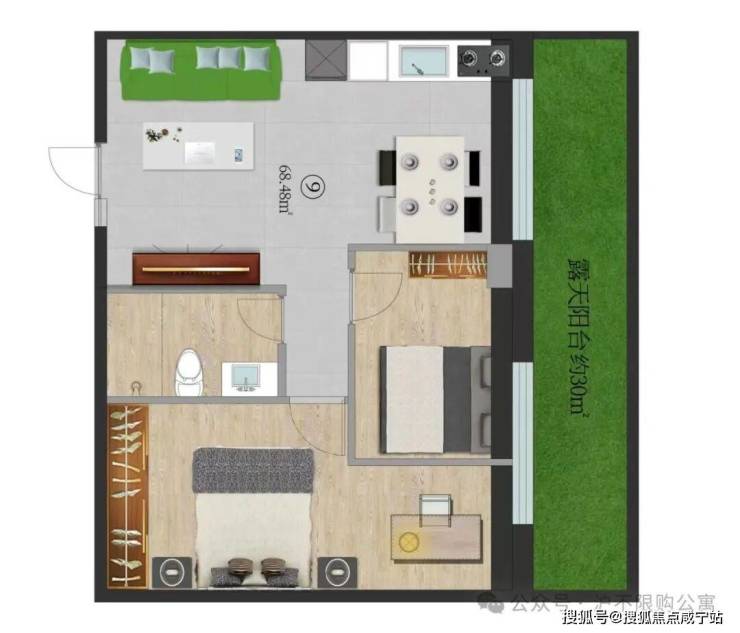09室,68.48㎡朝东2房带露台 265万