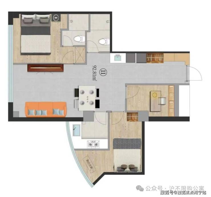 11室,92.81㎡西南边套带阳台338万