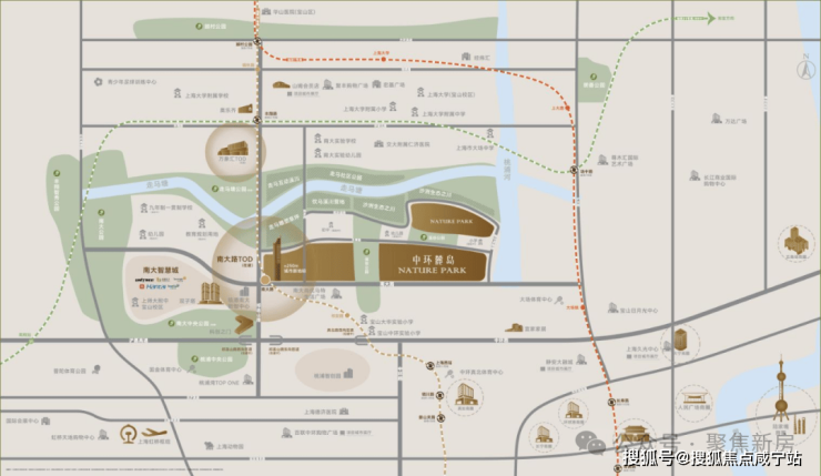 轨道交通方面:3条城市快速干道(外环高速、沪嘉高速、中环路)形成的“综合交通体系”,无缝对接15号线南大路地铁站,实现多层次立体交通的无缝出行,15分钟辐射人民广场、虹桥枢纽。