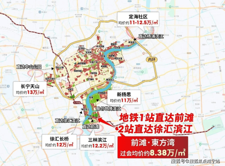 项目坐落于浦东三林板块,隶属上海“十四五”规划中的金色中环发展带,与前滩仅隔一条中环路,地铁11号线三林站直线距离约200米,步行可达,1站直达前滩核心,2站抵达徐汇滨江,轨交通勤优势显著。