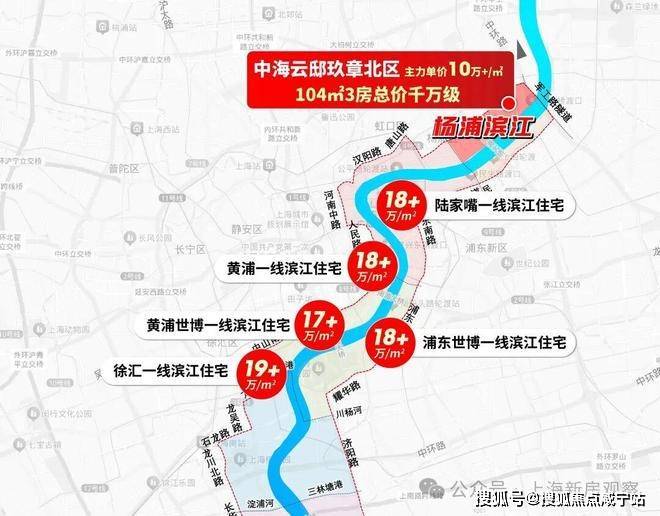 相较于同级别内环滨江段新盘价格梯度,黄浦滨江17万+/㎡、徐汇滨江20万+/㎡,中海·云邸当前均价11.49万/㎡的价格存在不小的优势。