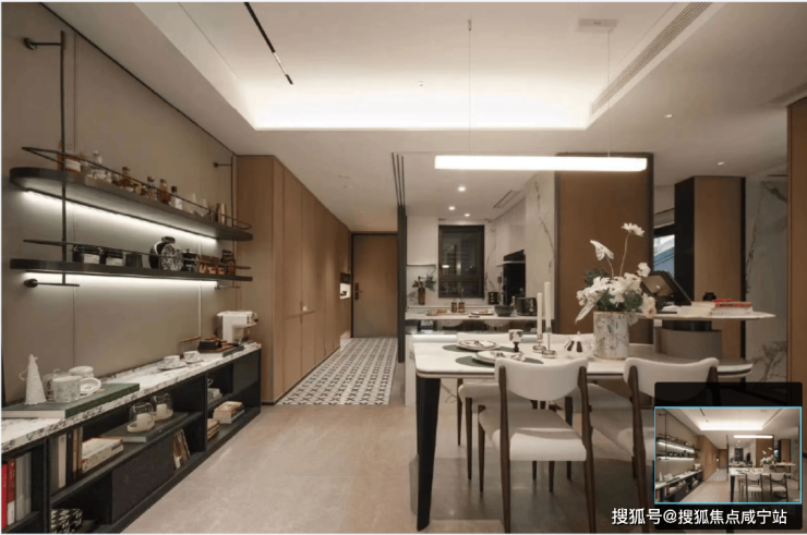 亮点二:客餐厅一体化,无隐藏空间浪费。空间的舒适度,不只来源于体现在面积的大小,更体现在功能区分的巧妙排布,映江润府,以快餐厅一体化设计,消除了“走廊式”隐形空间浪费,为家打造无界的交流空间