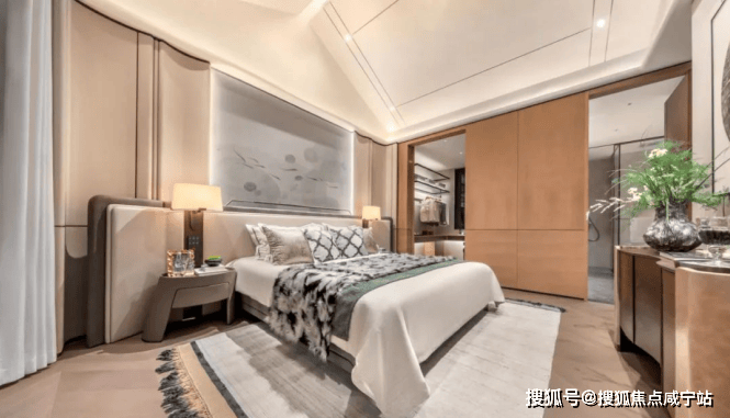 主卧尺度奢阔,起居室、衣帽间、卫浴间层层递进,为居住者提供了一个宽敞而舒适的私密空间。