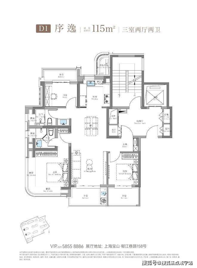 总价700万起其中,建面约115㎡鲲鹏阁三房户型