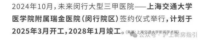 近邻复旦大学附属第五人民医院,距离吴泾医院只有差不多2公里,上海交通大学附属瑞金医院(在建,预计2028年1月竣工)