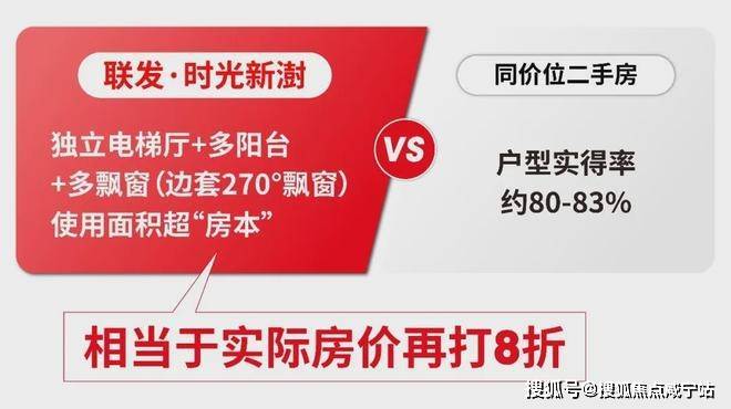目前市面上这个价位的二手房实得率基本在80%左右,而联发·时光新澍,多阳台+多飘窗+独立电梯厅,可用面积远超“房本”,折算下来实际单价相等于再打8折!