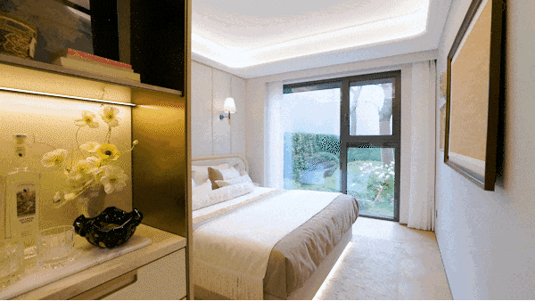 尤其是与卫生间相连的设备间,让浴室这个湿区被巧妙延伸,洗衣、家政动线就能与起居空间完全分离。幻想一下,洗完澡你再也不用抱着换洗衣服,横跨整个房间了。
