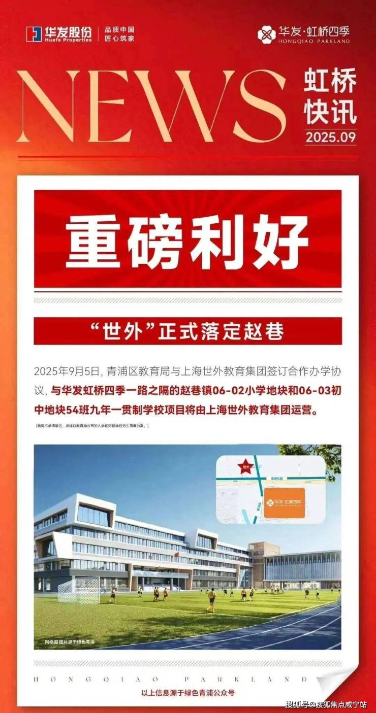 华发·虹桥四季南面规划建设15(幼儿班)+1(托儿班)的幼儿园,北面规划建设一所54班九年一贯制学校(于23年12月动工),项目距宋庆龄学校约3公里,距协和双语学校约4.5公里,真正优质教育资源聚集地。(仅列举项目周边学校名称,不作对口承诺,学区划分以教育局公布为准)