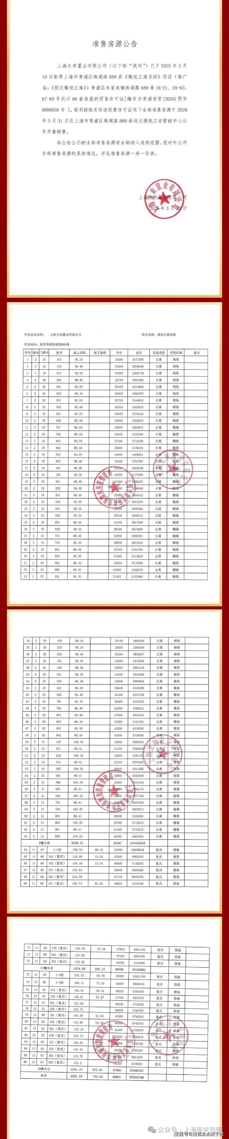 青浦朱家角「恒文璞悦江南」加推约88-230㎡洋房/叠加;均价40052元/m²!