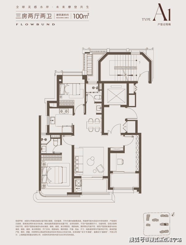 100㎡级入门型,三开间朝南,南北通透,全明户型。配备独立梯厅和圆弧阔景飘窗,市面罕见的高配。