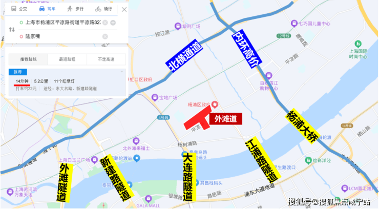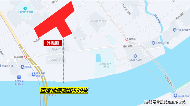 同时,直线2公里内还有新建路隧道、大连路隧道、江浦路隧道以及杨浦大桥直达浦东。从项目到陆家嘴、北外滩和外滩都在15分钟以内(百度地图测量)。
