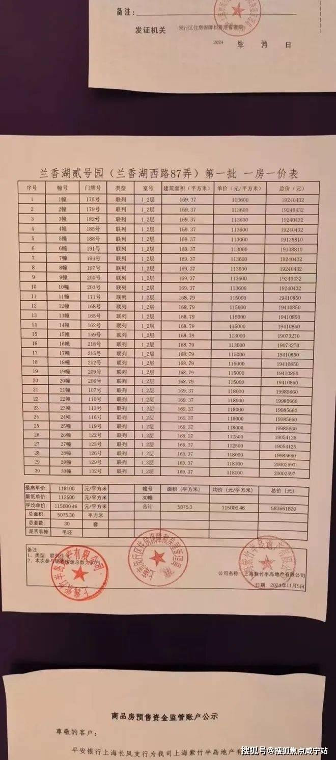 一房一价表如下