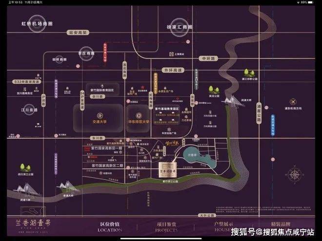 整个兰香湖社区位于上海2035规划的主城区里,距市中心大约20km,距15号线紫竹高新区站约1.7km,距在建的23号线华东师范大学站不到1km,预计未来40多分钟就可以到达徐家汇。