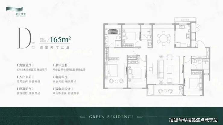 建面约165㎡4房2厅3卫户型